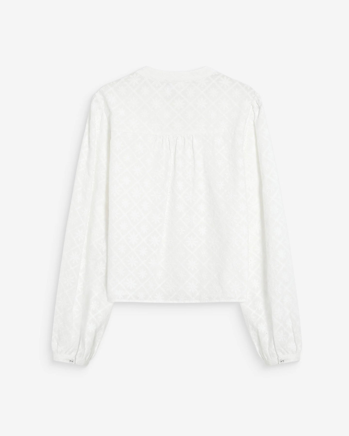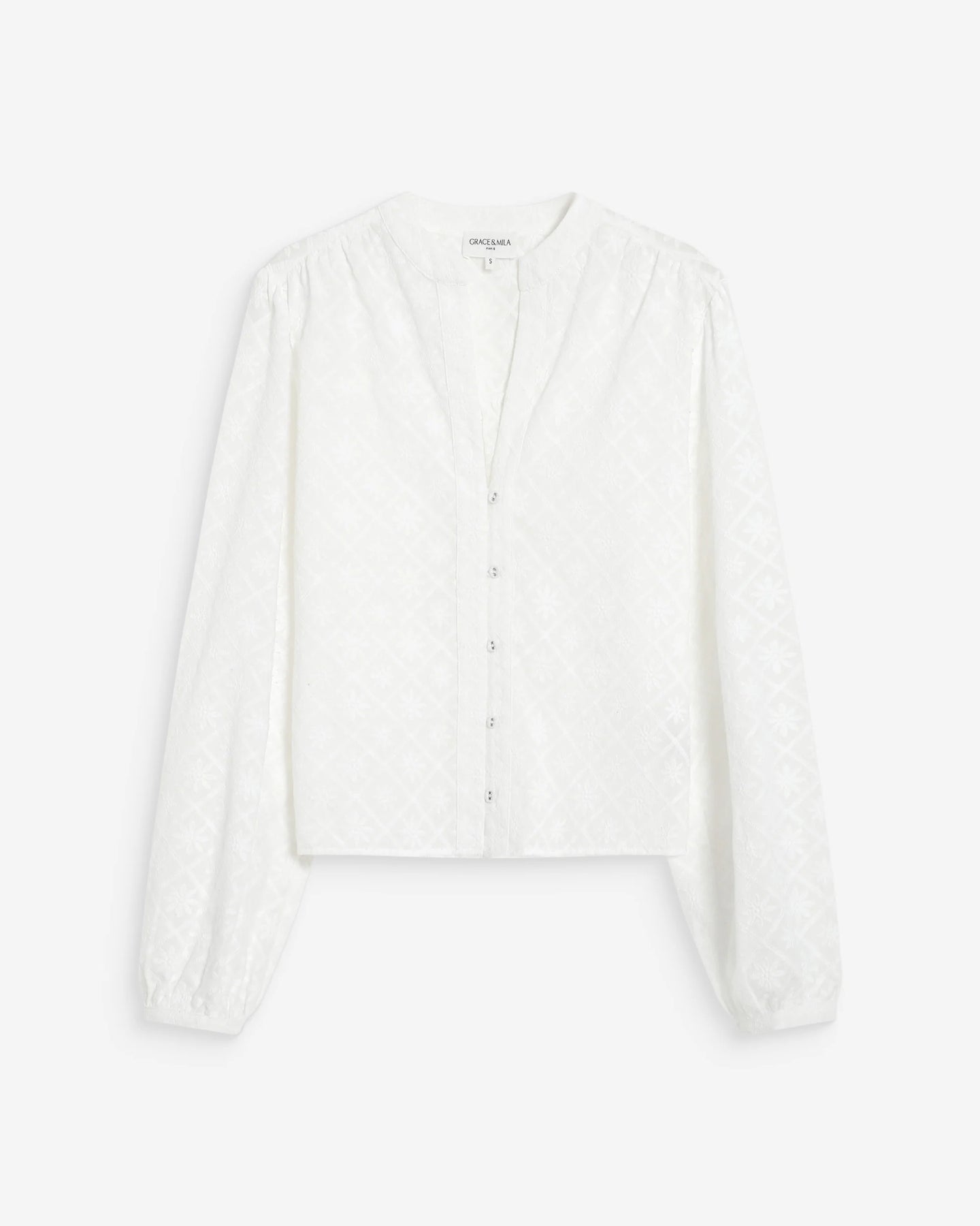 Grace & Mila Vandita Long sleeve Embroidery Blouse- White