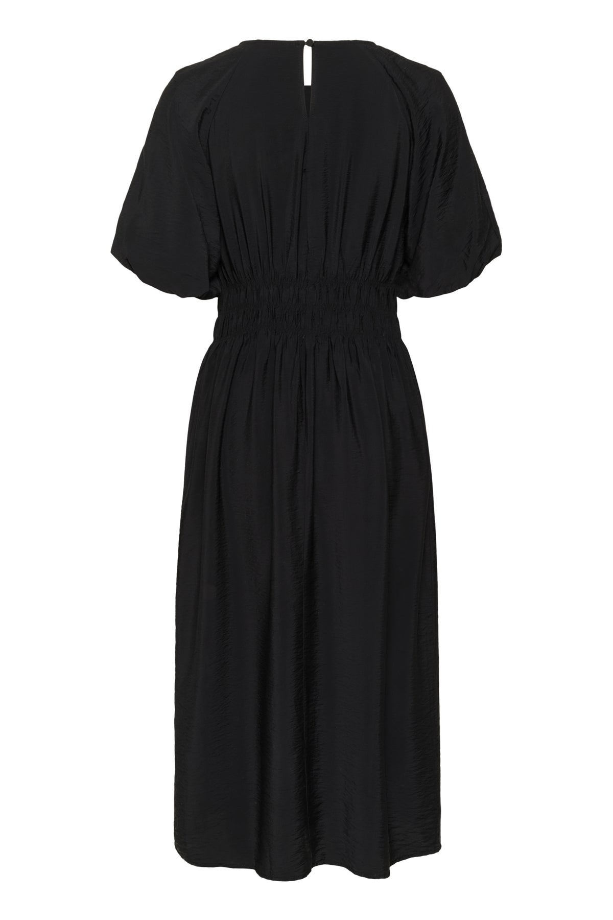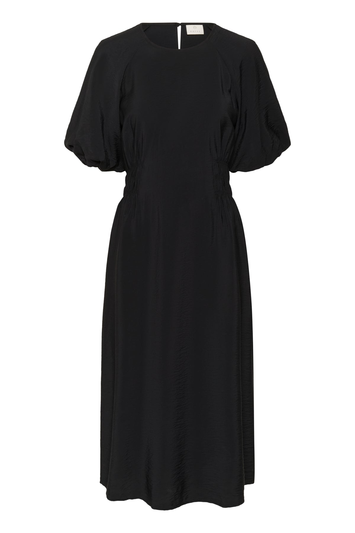 KAneema Dress is a beautifully woven piece crafted from a soft LENZING™ ECOVERO™ viscose‑nylon blend. Designed in a timeless Black Deep shade, it features a smooth drape and an elegant silhouette that makes it perfect for both everyday wear and elevated occasions. The lightweight fabric and refined finish give it a polished, feminine look that pairs effortlessly with boots, heels, or layered knitwear.