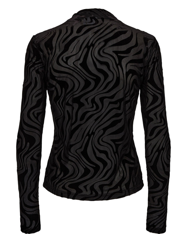 Sleek, stretchy, and effortlessly chic—the NUVELVA Blouse in deep caviar is your go-to for polished layering. Crafted from a soft jersey blend with added elastane, it offers a flattering fit with gentle structure. Perfect for pairing with tailored trousers or under knit vests for a refined seasonal look.