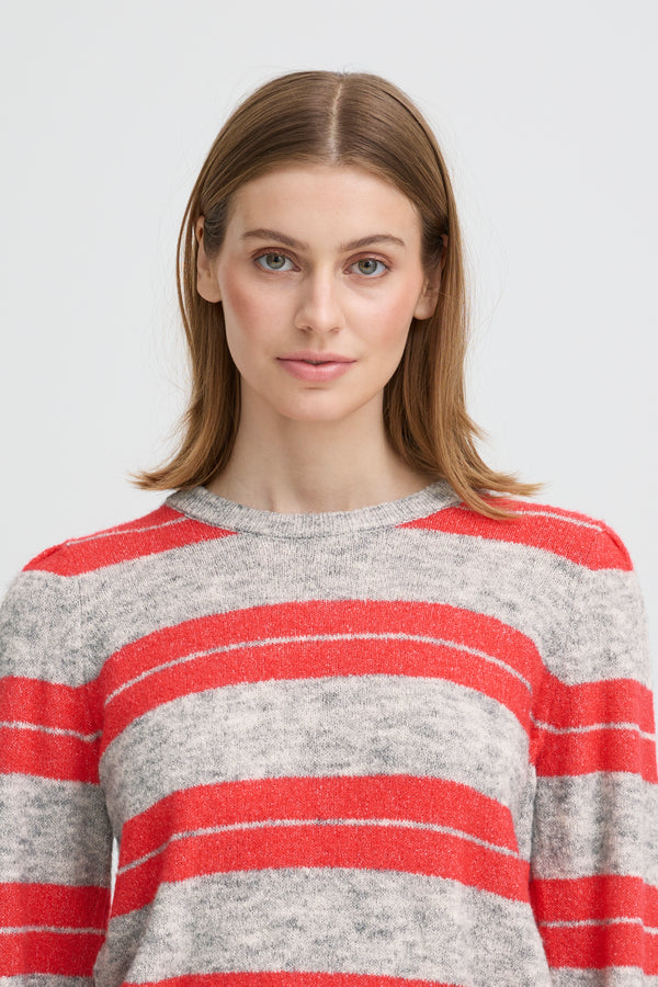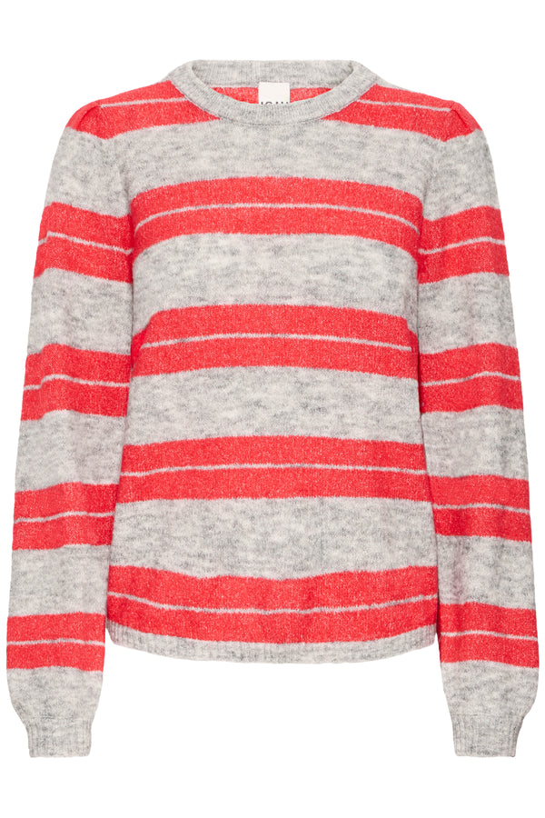 ICHI IHDUSTY Long Sleeved Pullover- Grey Melange with Teaberry Stripes