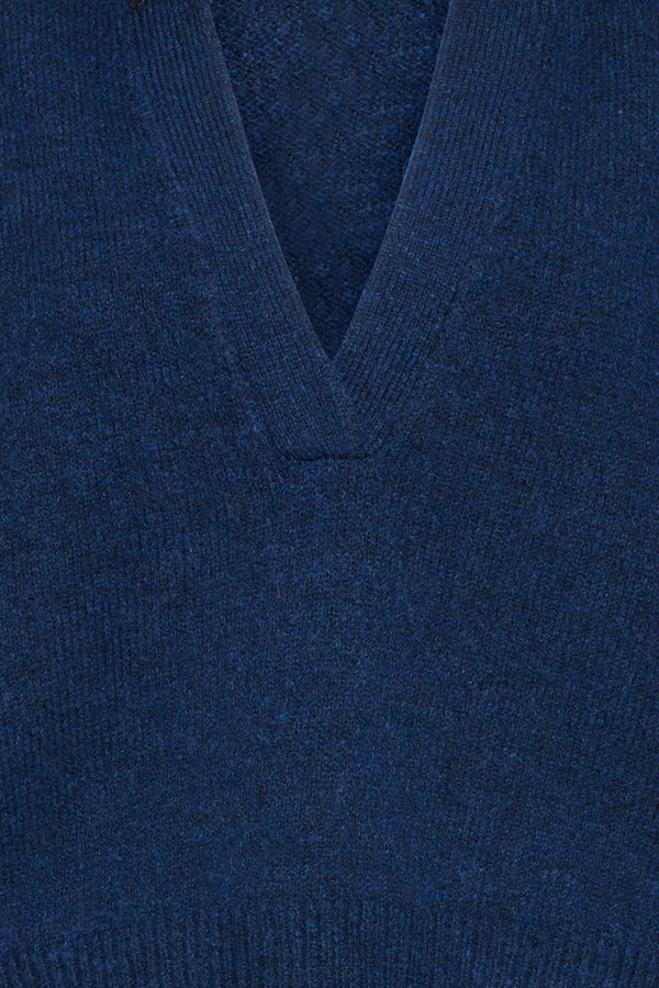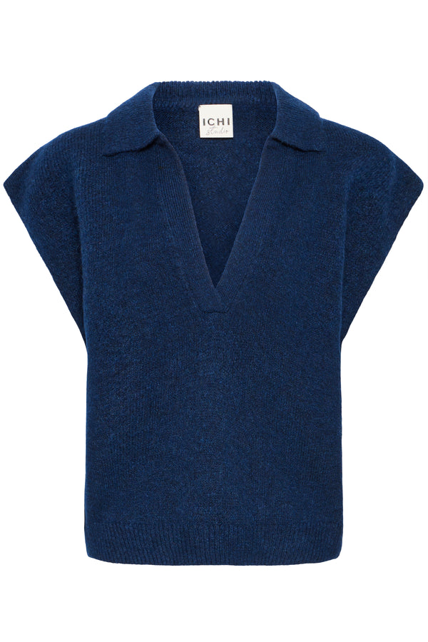 The IHPOVOKE Slipover by Ichi is a modern sleeveless knit designed for versatile layering and effortless style. Crafted from a soft polyester, acrylic, and wool blend, this women’s slipover offers warmth, comfort, and a chic silhouette. Its rich Blueprint shade makes it a standout piece for both casual and smart looks.