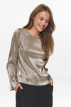 Add a touch of elegance to your everyday with the NUJIVA Cropped Blouse in soft champagne. Made from a smooth jersey blend with gentle stretch, this modern silhouette offers a flattering fit and effortless drape. Perfect for pairing with high-waisted trousers or layered under a blazer for a polished finish.